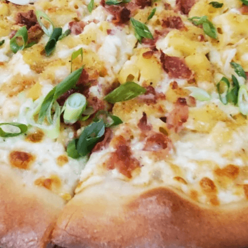 White sauce, Mac N' Cheese, Bacon, Green Onion