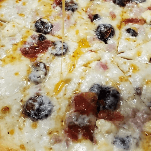 White sauce, Mushrooms, Artichokes, Spinach,Tomato, Kalamata Olives, Red onion and Feta