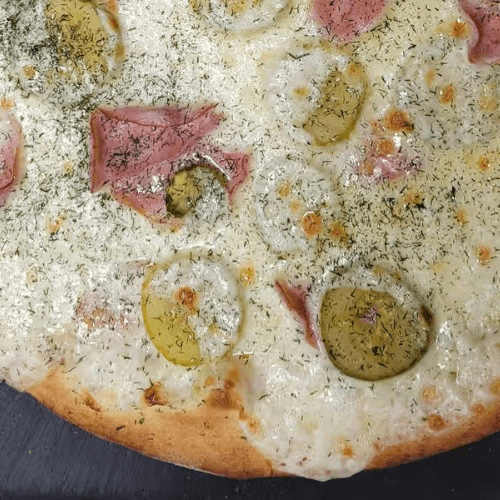 White Sauce, Canadian Bacon, Thin Sliced Pickles and Dill