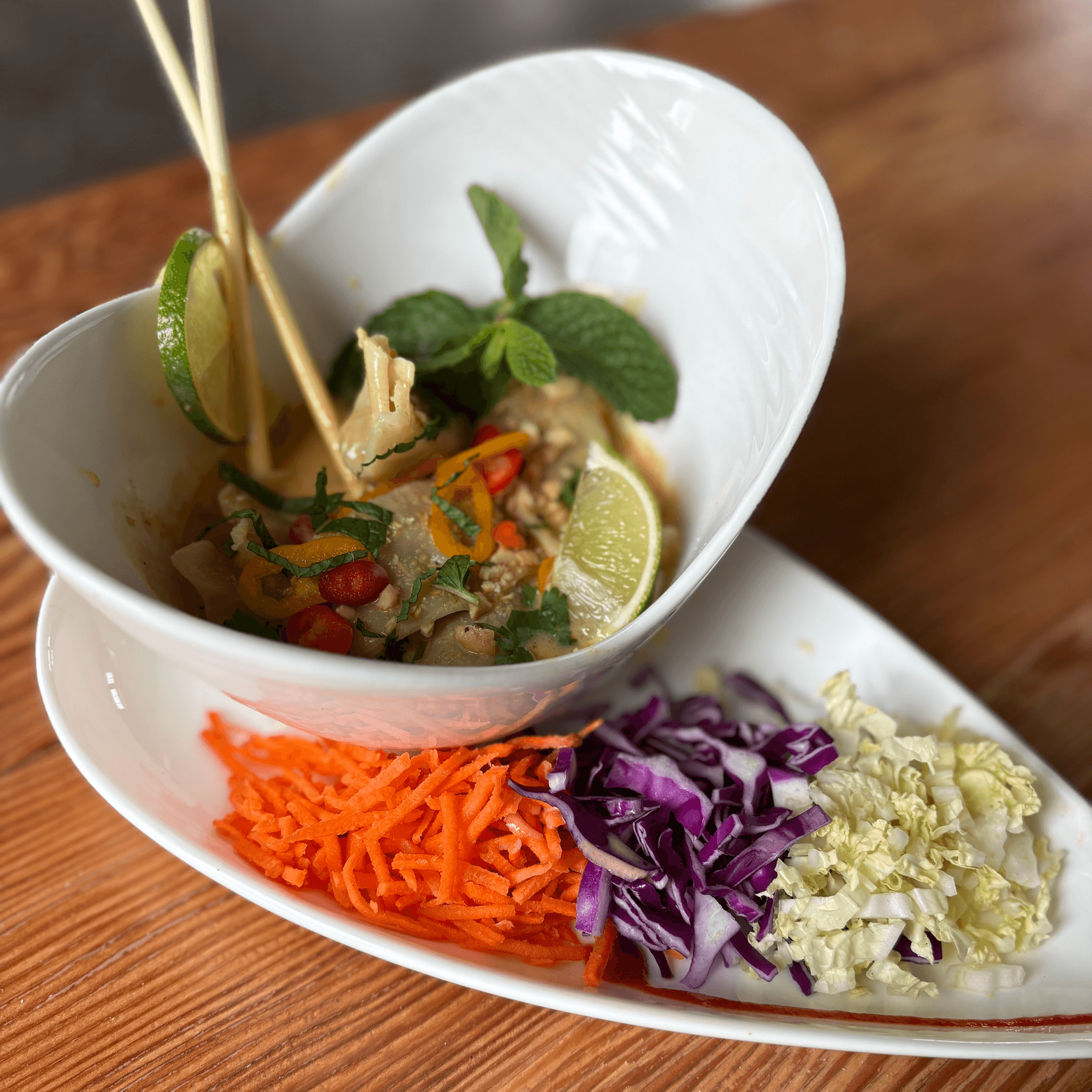 Perfectly seasoned with lime & toasted peanut sauce, local romaine.