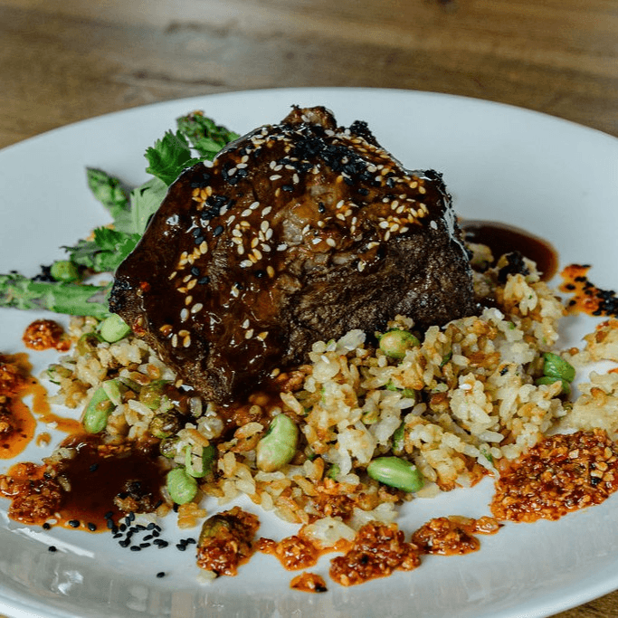 Slow Braised Beef, Asparagus, Edamame Fried Rice